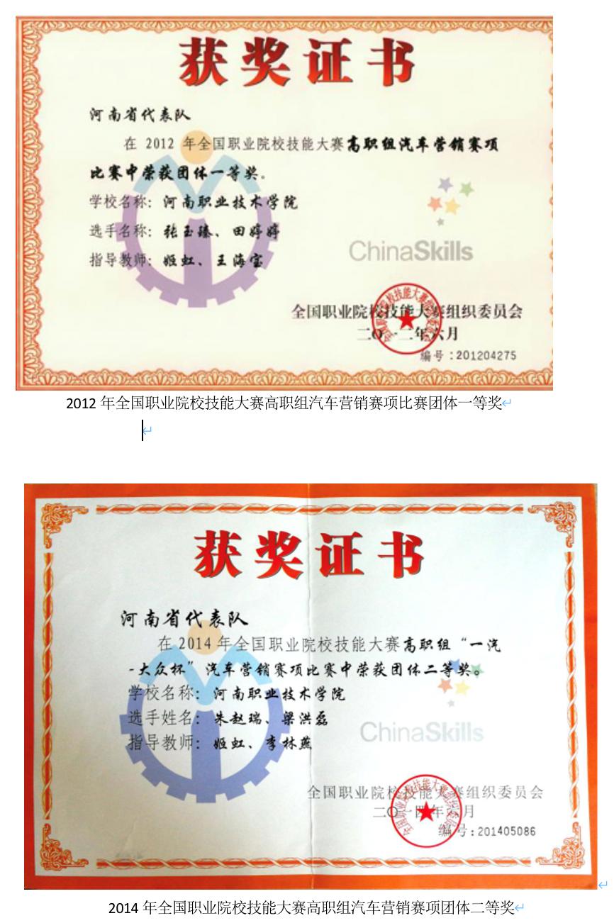 汽车技术服务与营销专业教师多次指导员工在全国职业院校汽车营销赛项中获得大赛奖项。(以下进展示部分获奖证书)。近年来,团队教师指导员工参加“互联网+老员工创新创业大赛率获佳绩。