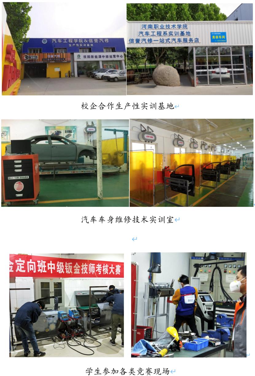 本专业校内具有装饰美容与改装实训室、汽车车身维修技术实训室、汽车涂装实训室等超过2000余平米。本专业在校内具有信誉校企合作生产性实训基地,可以满足汽车美容与装饰、汽车个性化改装、汽车车身钣金维修、汽车喷涂等相关课程实践教学。