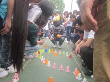 本次活动参加人员为11级汽车整形、汽车营销、汽车电子、汽车维修、汽车理赔、汽车装配六个专业,共计90余人。活动分为默契接果实、勇敢走下去、火车运气球三个环节。活动现场气氛热烈,同学欢声笑语,引得部分观众也纷纷加入到游戏当中。