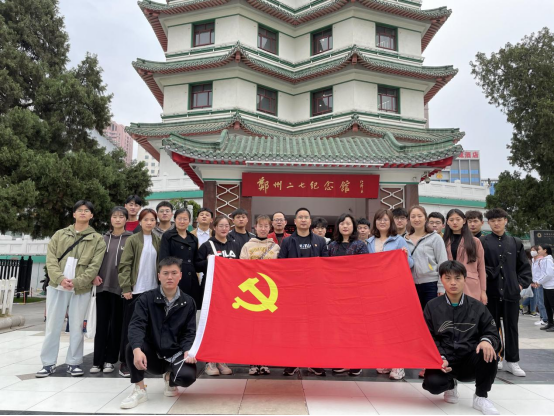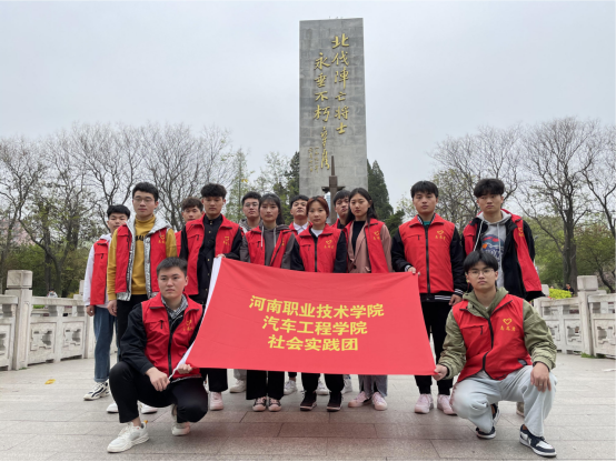 本次活动途径二七纪念塔和碧沙岗公园等红色革命基地。位于郑州二七广场的二七纪念塔,建于1971年,是为了纪念京汉铁路总罢工及“二七”烈士而修建的。塔内陈列有“二七”大罢工的各种历史文物、图片、文字资料,在参观的过程中,同学们仿佛又被拉回到了那个硝烟弥漫的年代,切身感受到了中国工人阶级最勇猛的奋斗精神和最伟大的牺牲精神。而如今的碧沙岗公园,是冯玉祥将军为纪念北伐国民革命军第二集团军阵亡将士而修建的陵园,陵园建成后命名为“碧沙岗”,取自“碧血丹心,血殷黄沙”之意。陵园内修有纪念亭,并立有碧血丹心纪念碑,碑正面“碧血丹心”4个大字,苍劲有力,熠熠闪光,是冯玉祥将军亲笔所书。碑背面是冯玉祥将军撰写的《阵亡烈士纪念碑碑文》:“冒白刃,涂肝脑……凡我中华民族,靡不引为大耻,此耻一日不雪,恐先烈之灵一日不安……”碑文朴实无华,力透纸背,时至今日读来,仍然掷地有声,让人热血沸腾。