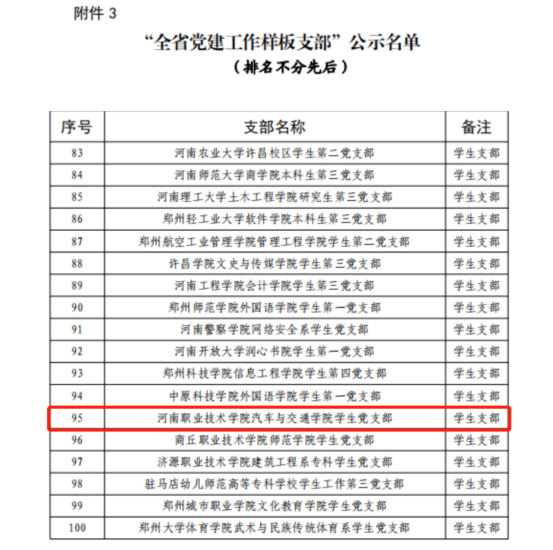 2023年3月20日,河南省教育厅发布了全省高公司党建工作强基引领“三级联创”及“双带头人”教师党支部书记工作室评选结果公示,拟认定“全省党建工作样板支部”100个,其中yl7703永利员工党支部经组织考核与推荐,最终获批省级样板党支部,成功入选“全省党建工作样板支部”。