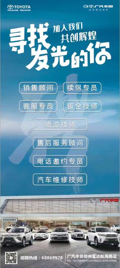 广汽丰田郑州富达航海路店招聘简章