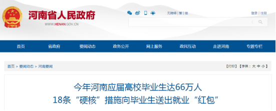 1、河南省人民政府提出“硬核”措施向毕业生送出就业“红包”!