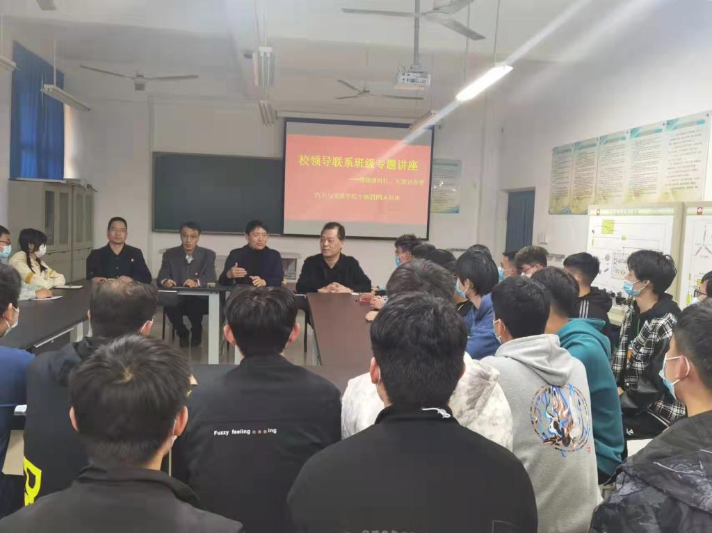 中国共产党第十九届中央委员会第六次全体会议,于2021年11月8日至11日在北京举行。会上中央委员会总书记习近平作了重要讲话,审议通过了《中共中央关于党的百年奋斗重大成就和历史经验的决议》、《关于召开党的第二十次全国代表大会的决议》。为了更好的贯彻落实习近平总书记关于党史学习教育的重要讲话精神,校工会主席夏喜利为车辆工程2101班的同学们开展了一堂以“拥抱新时代,共筑青春梦”为主题的专题讲座。公司党总支书记宋东方、经理吉武俊、党总支副书记夏连峰、辅导员尹霞参加了本次专题讲座。