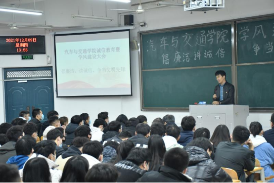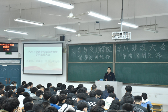学风建设是公司建设的重要组成部分,学风的好坏直接影响着教学质量的提高和人才培养目标的实现。为促使公司员工进一步端正学习态度和生活态度,营造严谨、勤学、积极上进的生活氛围和学习风气,打造良好学风班风。12月9日下午13:30,公司在1104教室召开主题为“倡廉洁 讲诚信 争做文明先锋”的诚信教育暨学风建设大会。公司领导班子集体出席,2020级和2021级共39个班级的班委参加了本次大会。本次大会由公司党总支副书记夏连峰主持。