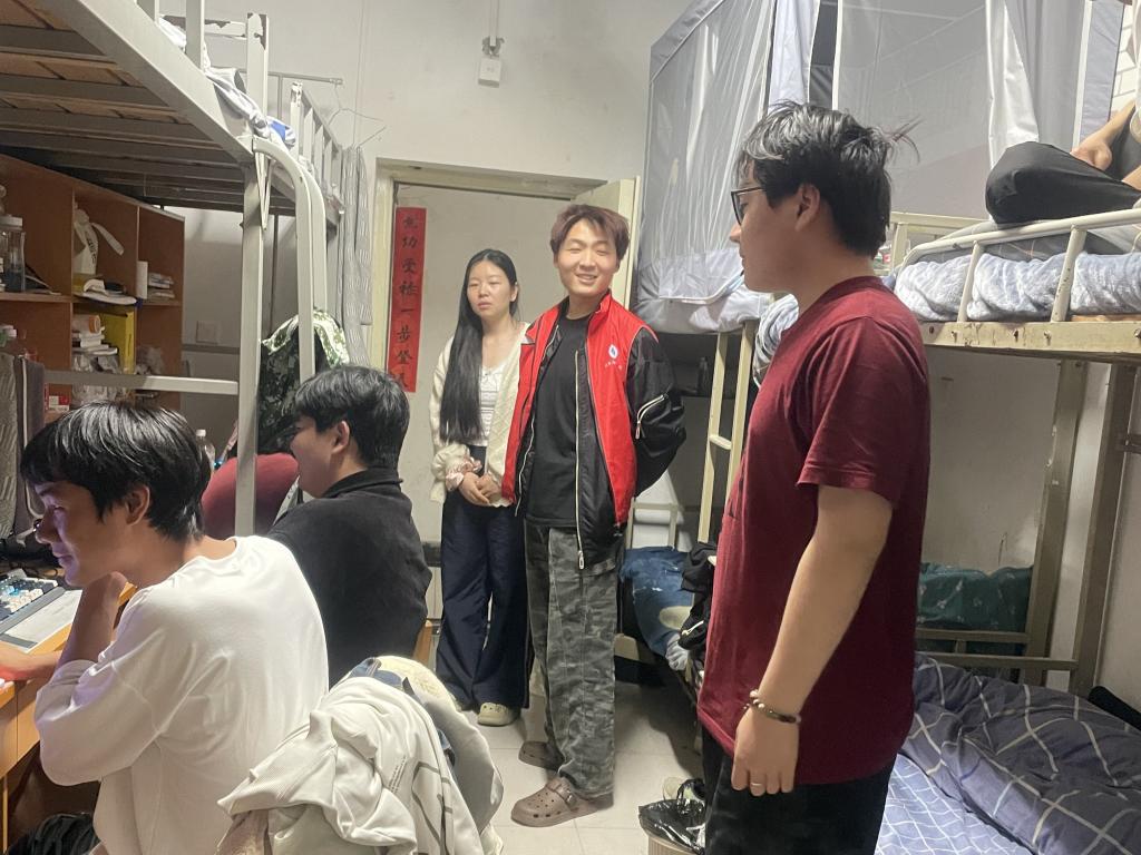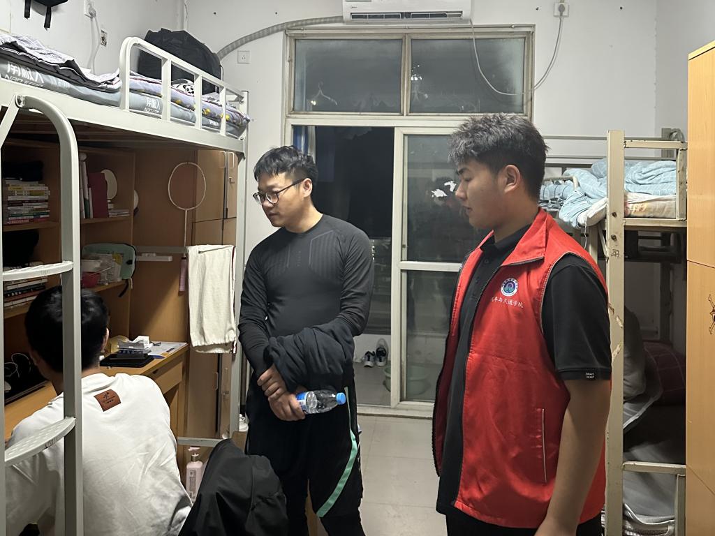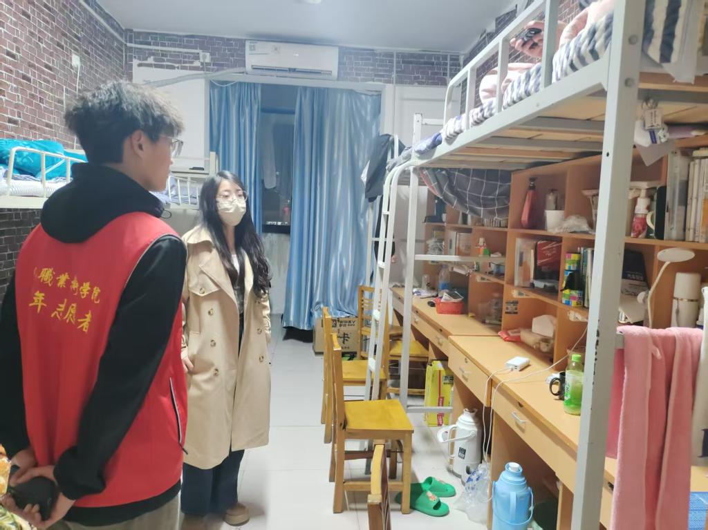 本次走访重点围绕清明节后心理调适、宿舍违规电器使用、线路私接乱搭、卫生死角清理等问题展开,针对个别宿舍存在的插排串联、床帘遮挡消防设施等问题,老师们耐心的向同学们讲解了其存在的安全隐患,并提醒同学们尽快整改。房静在走访中亲切叮嘱同学们:"安全无小事,要像爱护自己的家一样维护宿舍环境,既要做好'面子'工程,更要夯实'里子'基础。"辅导员们还就春季传染病预防、心理健康调适等问题与同学们展开交流,细致解答返校适应期的各类困惑。