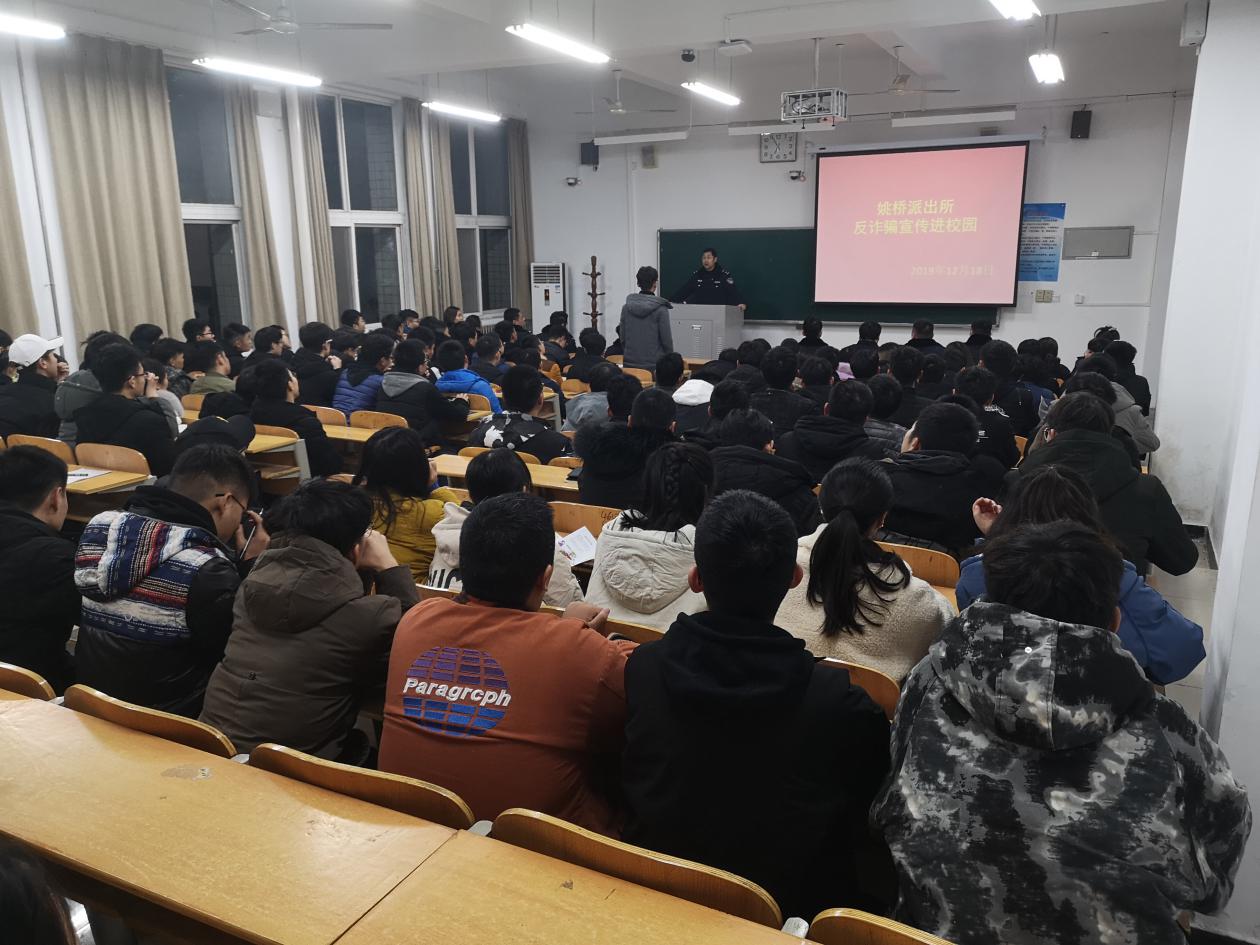 12月18日晚,郑州市姚桥派出所民警走进yl7703永利开展了“反诈骗进校园”专题教育宣传讲座,yl7703永利160多名员工参加了此次讲座。