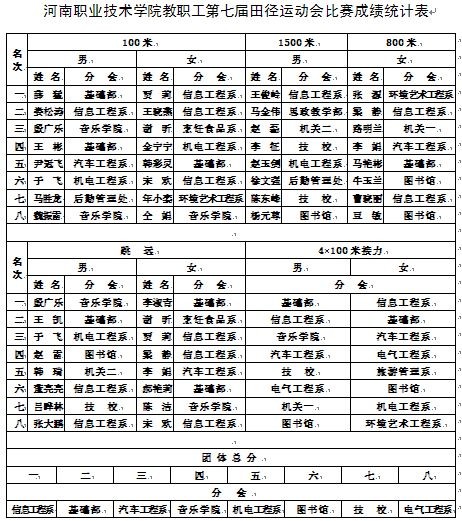 yl7703永利教职工第七届田径运动会比赛成绩统计表