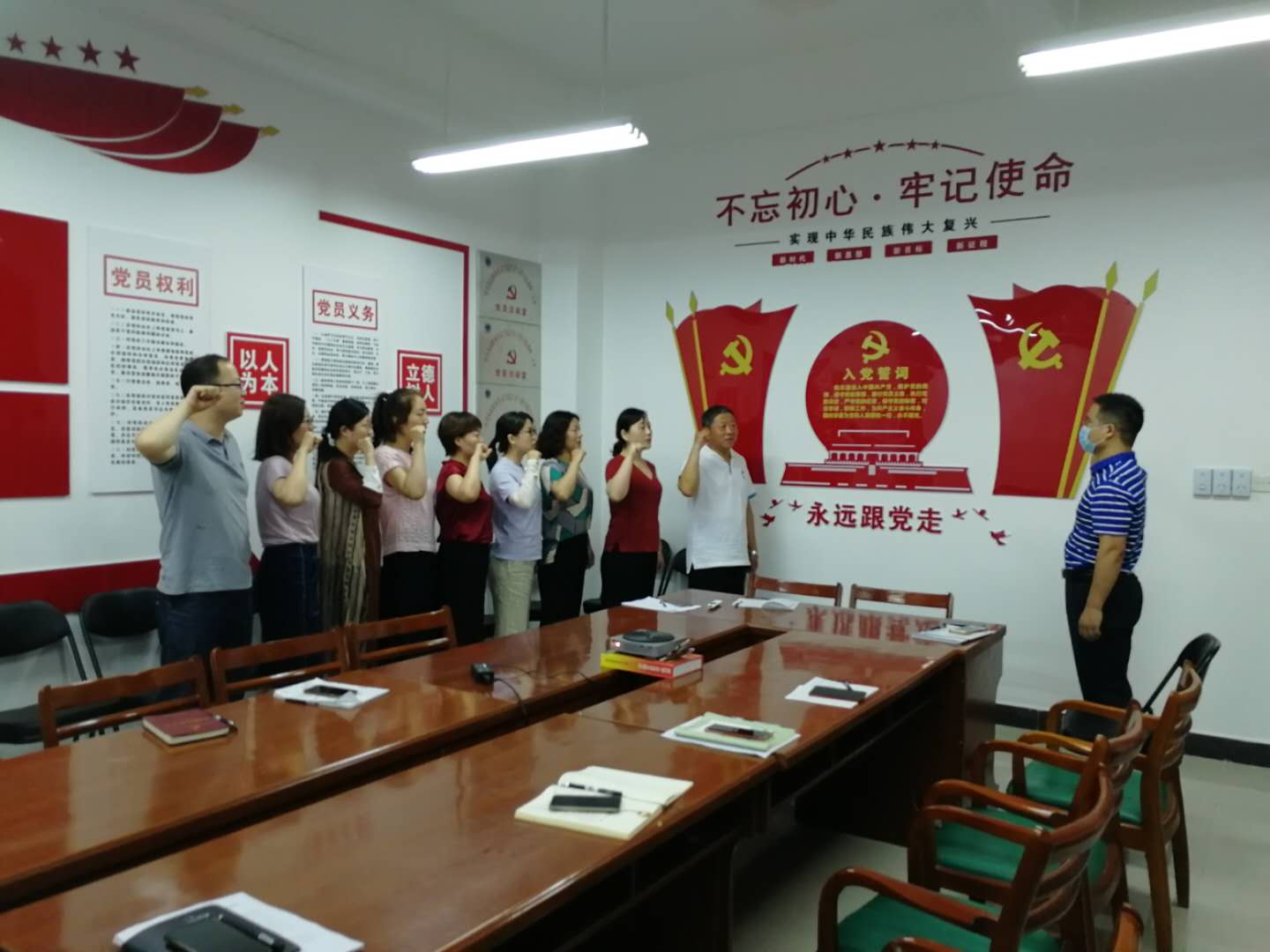 会议第一项,由公司党总支副书记夏连峰同志带领大家面对党旗,举起右手,庄严向党组织宣誓。通过重温入党誓词,强化政治信仰,坚持与时俱进,恪守承诺,努力实践,自觉奉献,不断进取,奋斗终身。