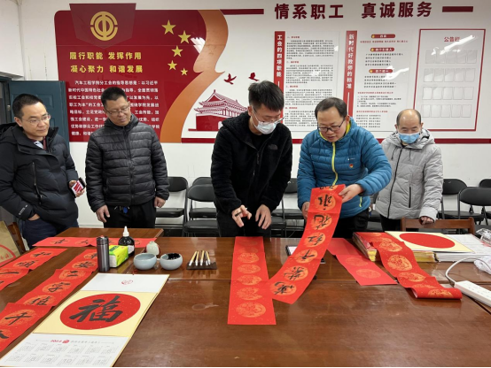 “万里鹏程平地起 四时鸿运顺心来”、“和顺一门有百福 平安二字值千金”......一幅幅火红鲜亮的春联在书法家笔下诞生,行云流水的笔式、一横一撇一捺,笔落字现。公司工作人员和志愿者们则忙前忙后,帮忙铺纸研墨,大家分工协作,配合默契,活动秩序井然。活动吸引公司广大教师参与,有书法爱好的老师也一展技艺,泼墨挥毫。许多老师提前拟好心意的春联内容,请书法家现场书写。也有老师现场创作一抒胸臆,将美好祝愿跃然呈现。现场共书写送出春联及“福”字200多幅。