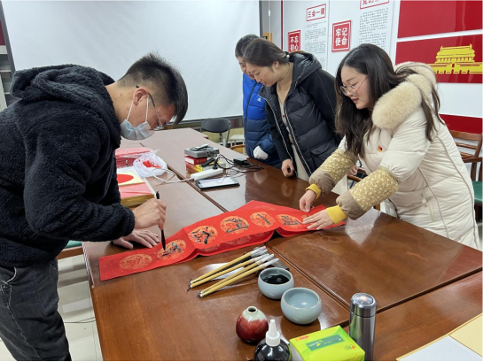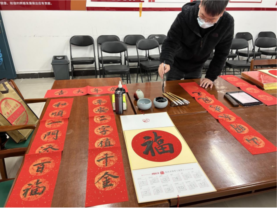 “民安国泰逢盛世 风调雨顺颂华年”,1月10日农历十二月初八,中国传统腊八节,俗语说“过了腊八就是年”,过年的脚步越来越近。为弘扬中华民族优秀传统文化,营造文明和谐的节日氛围,10日下午yl7703永利分工会举办了“喜迎壬寅年 春联送万家”写春联送祝福活动。特邀请公司2018届优秀毕业生、中国硬笔书法家协会会员、河南省青年书法家协会会员、碧梧书院副经理孟明洲现场书写春联,为全院教师送上新春祝福。