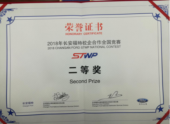 公司荣获“2018年长安福特校企合作全国竞赛”二等奖