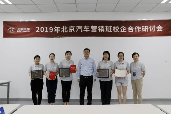 在本次校企合作研讨会中,对在2018-2019年度表现优异、为北汽人才发展做出了突出贡献的院校和个人予以表彰,公司获得“北汽优秀合作院校”和北汽订单班的教师姬虹获得“北汽营销班优秀项目教师”称号。