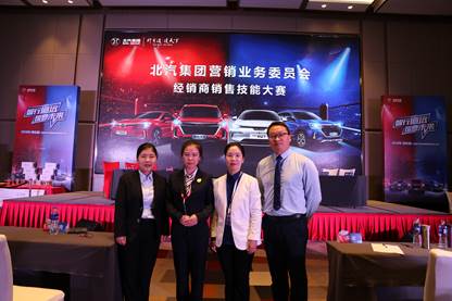 2019年9月17-19日为期三天的北汽集团营销业务委员会经销商技能大赛总决赛在沪举行,在销售技能大赛中,全国48强选手进行了在线考试、个人演讲、案例分享、实操演练、针锋相对、最强大脑六个项目的比拼,经过三天的精彩角逐,公司16级北汽订单班员工(现郑州大广汽车销售有限公司销售顾问)在此次比赛中过五关斩六将,获得全国销售顾问岗位季军。