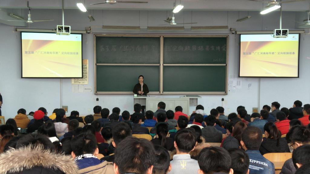 24日下午,在3212教室举行汽车工程系第五届“广汇裕华订单班”宣讲会。广汇集团华北大区人事部总监王俊玲、广汇集团华北大区人事部经理石璞、汽车工程系第四届广汇裕华班优秀实习生代表王丁丁参加了本次宣讲会。汽车工程系2015级各专业350余名有意向参加该订单班的同学到场听取了企业介绍和订单班组建流程。