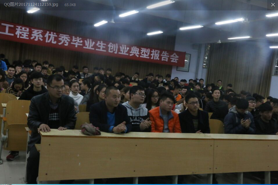 两位企业创始人共同送给在校生八个字“脚踏实地、厚德载物”。告诫师弟、师妹们无论就业还是创业都要先做人再做事。引导员工理性认识创业,通过他们的成功案例激发员工的创业热情。我系2016级350余名同学参加了本次报告会。
