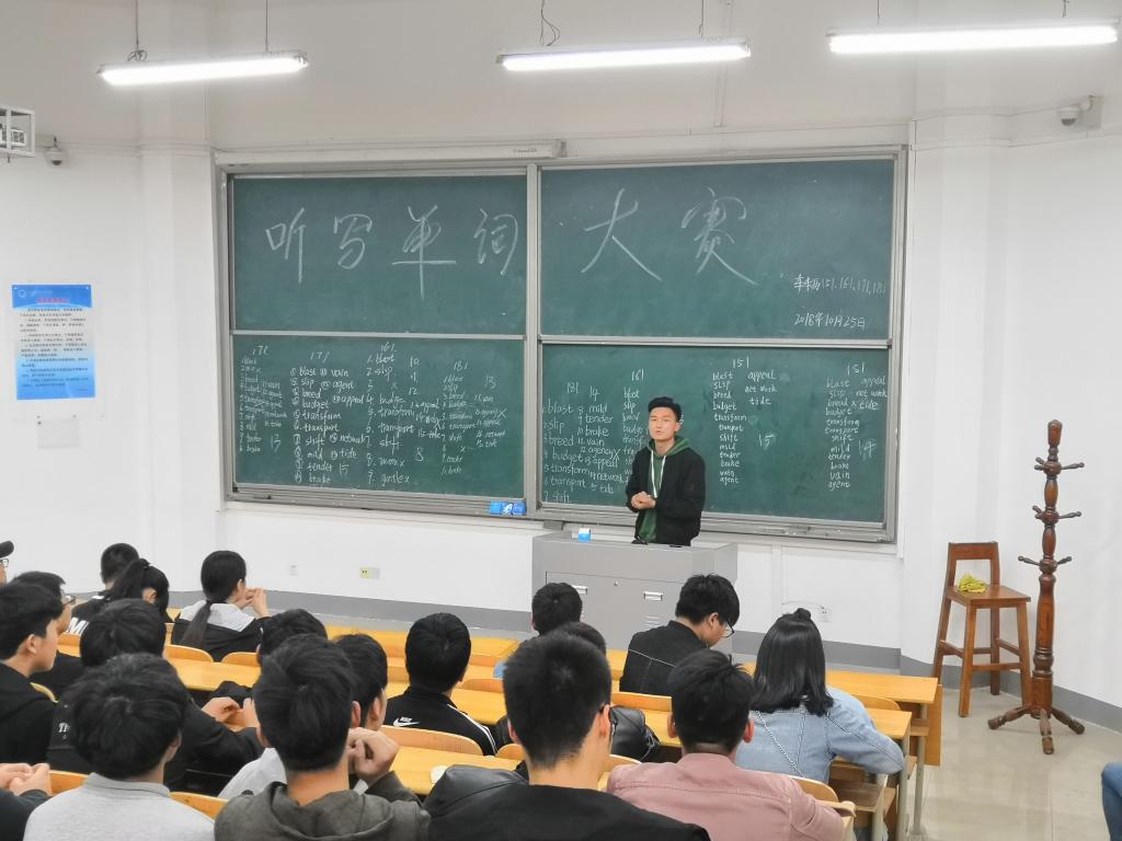 为进一步提高员工学习英语的积极性,引导员工正确识记英语单词,yl7703永利本科班于2018年10月25日下午3:30,在电教楼104教室举办了本科班单词听写大赛,参赛成员为车辆工程151班、161班、171班和181班的实力选手,本次比赛由公司员工会文艺部部长刘宇和办公室主任孙腾担任评委。