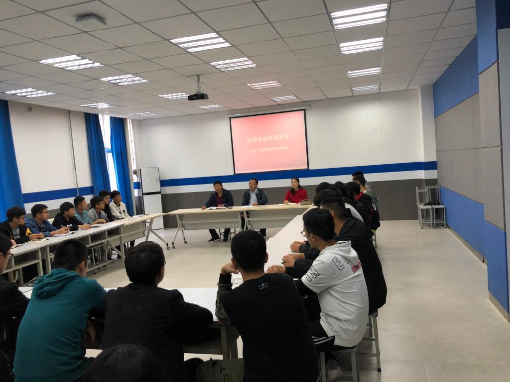 31日上午,学工部鲁冬处长进入汽修185班,与该班同学见面并进行了座谈会,汽车工程公司党总支书书记朱梦杰向同学们解读了领导干部联系班级制度并主持座谈会。