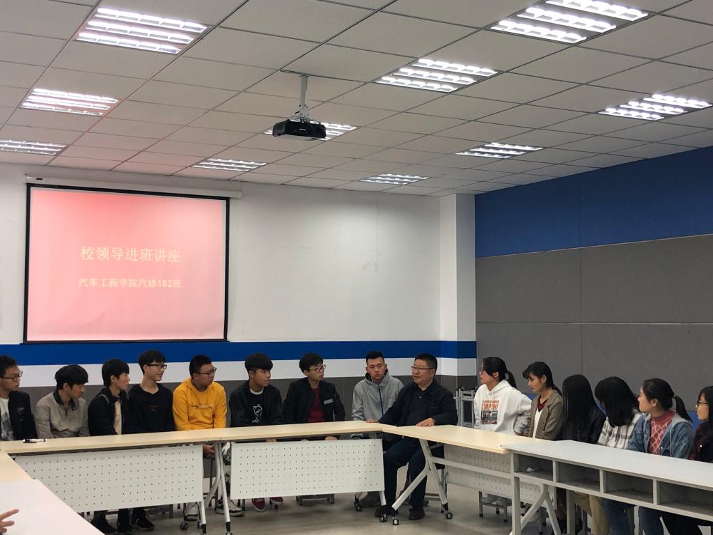 31日上午,保卫处黄勇军副处长在汽车实训楼209教室与汽修182班同学见面并进行了座谈会和专题讲座,汽车工程公司党总支书书记朱梦杰向同学们解读了领导干部联系班级制度并主持座谈会。