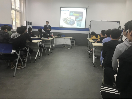 2018年10月26日郑州宇通客车股份有限公司技术中心丁新须总工程师就基于CATIA平台设计的汽车产品开发技术讲座在yl7703永利CAM实训室顺利举行。