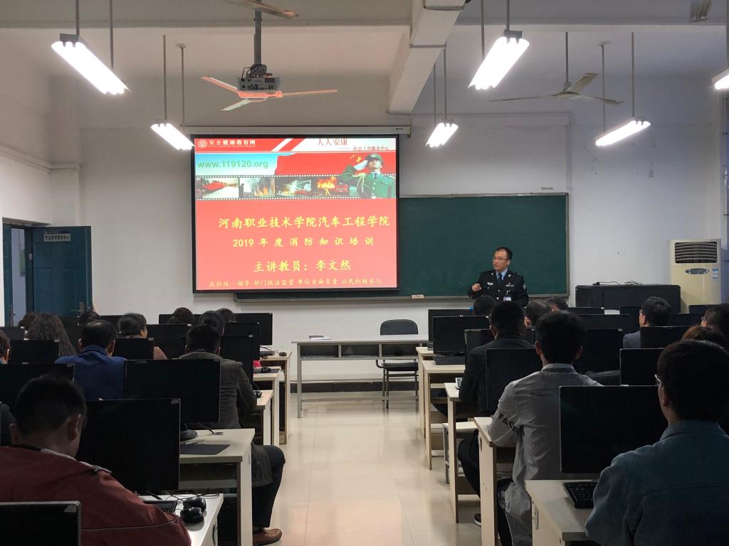 为提高公司师生的安全意识,掌握消防基本知识,11日下午,yl7703永利在实训楼301教室开展了2019年春季安全检查动员会议及消防安全知识培训活动。公司党总支书记朱梦杰主持本次安全检查动员会议,对公司本次春季安全检查活动进行了部署,要求公司所有教职员工及员工从思想上高度重视,从源头消灭安全隐患,认真贯彻落实“安全第一,预防为主”的安全方针。本次活动邀请河南省消防协会李文然教员来公司授课。李教员通过一个个真实生动的火灾案例,深入浅出的讲述了消防安全的重要性,就防火、灭火、逃生、自救四个方面进行了重点阐述,并介绍了火灾的形成过程、火场中易出现的延误逃生时机的误区、自救逃生的方法以及灭火器的种类、操作使用方法等一系列消防安全知识。本次讲座使公司员工的消防知识和自防自救能力得到了极大提高,对做好消防安全工作的重要性和意义有了进一步认识。公司部分教师及2018级各班生活委员同学共计50余人参加了本次培训活动。(撰稿:张洁,审稿:夏连峰)