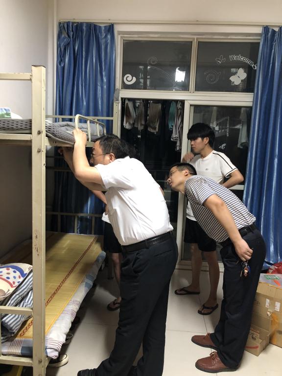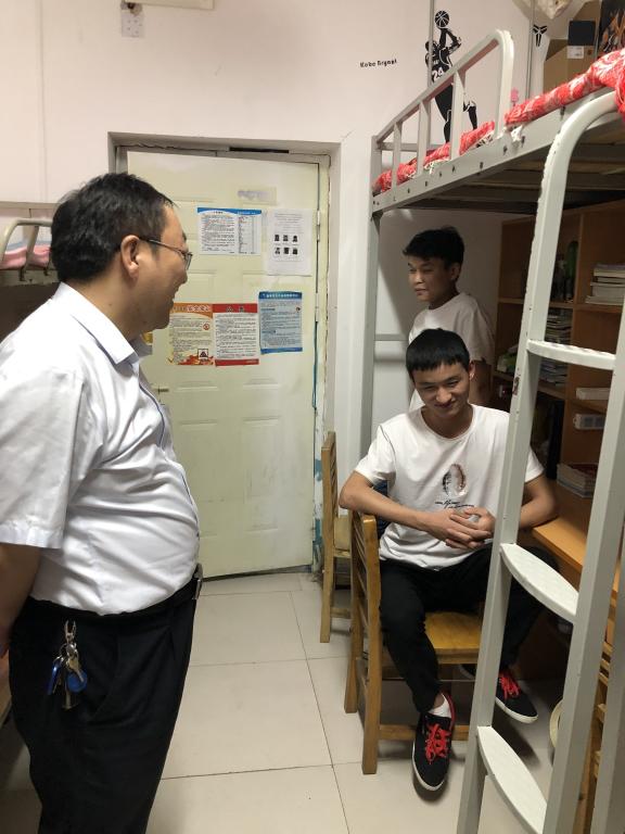 5月23日晚,校学工部处长鲁冬在汽车工程公司党总支副书记夏连峰及辅导员老师的陪同下,走进所联系的班级汽修185班宿舍与同学们深入交流。