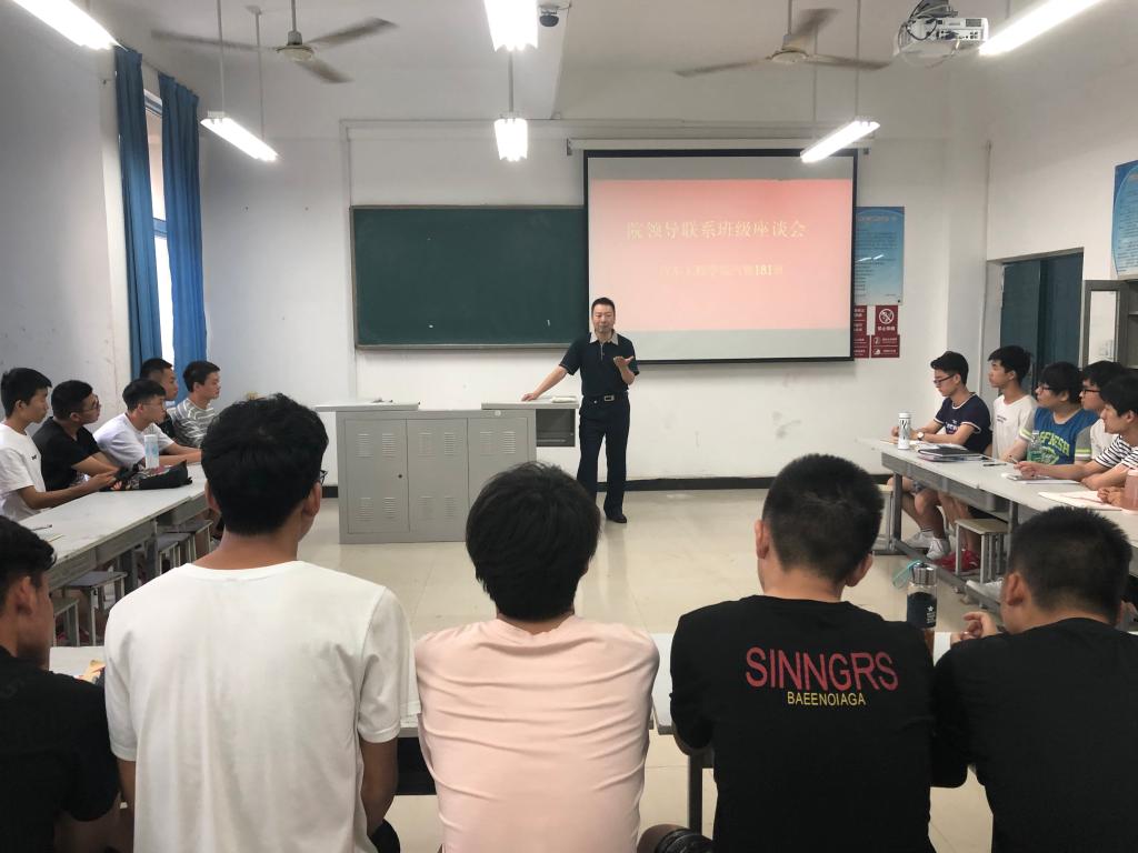 2019年6月10号下午,yl7703永利汽修181班领导干部联系班级员工座谈会在yl7703永利实训楼205教室举行。保卫处程宇处长面对面与汽修181全体员工交流座谈。