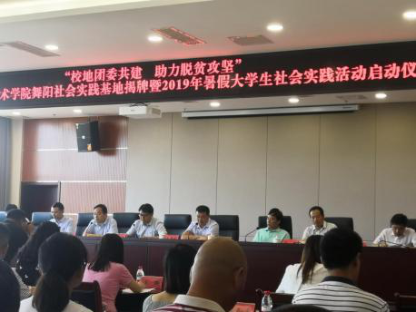 经过一个多小时的行程,到达了舞阳县,大家一起参加了由舞阳县各位领导以及公司领导主持的社会实践活动启动仪式,标志着本次的社会实践活动正式开始。公司的校地帮扶对像是北舞镇渡镇当地的农机合作社合作,队员们将通过亲身实践、无偿维修农用机械、无偿保养农用机械等活动,共同为打赢脱贫攻坚战而奋斗。