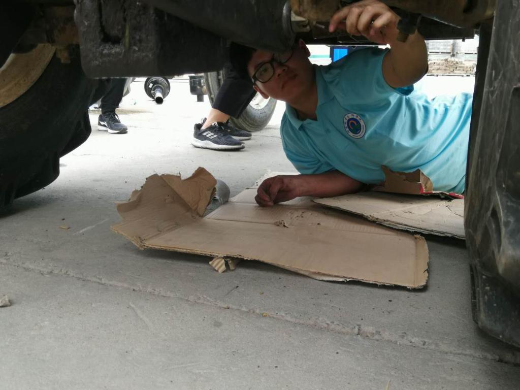 7月5日清晨,休息一晚的队员们又激情饱满地出发了。今天我们的工作对象还是对两台天山奔马1000的保养与维护。我们首先对两台机器进行全放方位的清洗,然后对整车及升降机螺钉进行了检查和紧固,检车了全车油液位置,打黄油并对损坏的黄油嘴进行更换,检查轮胎气压并进行加压,处理离合器分离不彻底的问题,清洗空气滤清器对整车的链条加注润滑油进行润滑等项目。