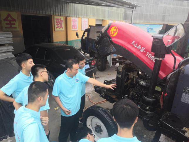 指导老师贾海舰一边检查农机故障一边对同学们讲解损坏部件的损坏原因及损坏后对农机的危害,同学们干力十足,并细心听讲老师的讲解并对老师所讲的内容进行了记录。
