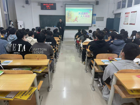 保卫处处长程宇为汽制211班同学召开“冬季消防安全”专题讲座