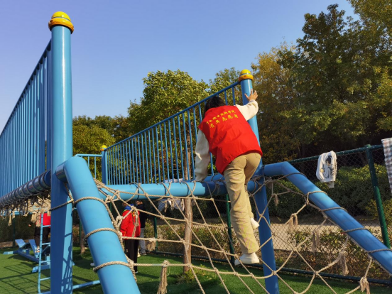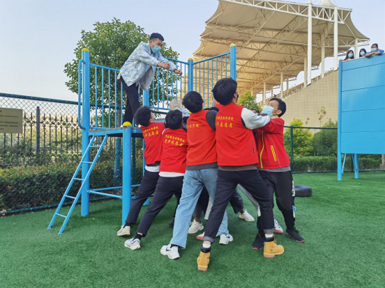 在确认所有参加活动同学均没有心脏疾病、高血压、哮喘、癫痫等突发疾病,近期也没有做过手术后,田老师对现场员工进行了分组,并讲解各个训练项目的规则和安全注意事项。随后,参训员工有序参加了“青少年障碍赛”、“礼让通行”、“穿越电网”等项目后,同学们对“信任背摔”跃跃欲试。老师指出,“信任背摔”项目是一项考验同学们之间信任感的活动,这个过程需要克服恐惧,更需要信任合作。伴随着“准备好了吗”声音的反复落下,多名同学体验了“信任背摔”项目。