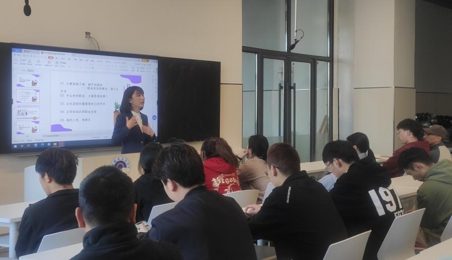讲座中,万主管给同学们指出在职业规划上普遍存在的误区,并从怎样合理认识自己的性格优势出发,引导同学们发掘自己感兴趣的职业,进一步对如何学习分析行业的前景及其对自身发展空间的展望,展开诠释和讲解。