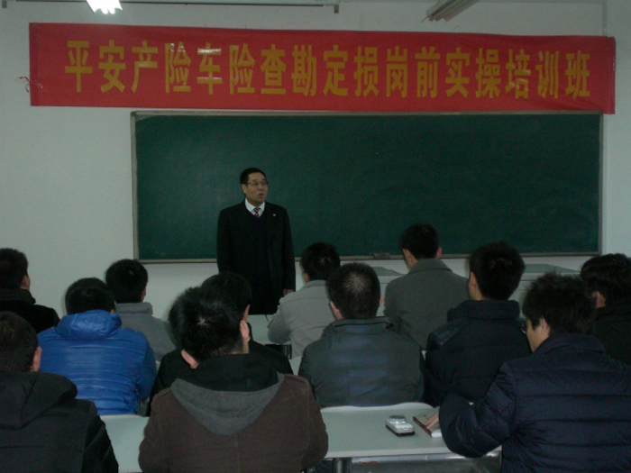 经与中国平安财险河南省分公司协商,12月1日上午,汽车工程系2014年度平安财险查勘定损岗前实操培训班正式开班,共有来自平安财险河南省分公司的16名新入职员工参加培训。
