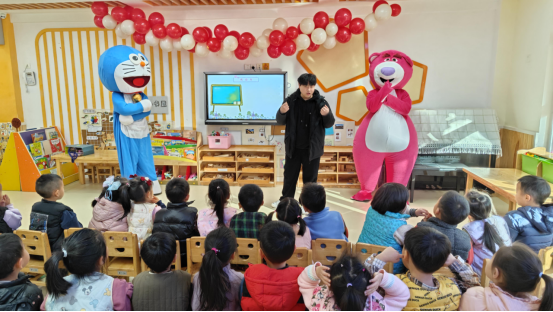 活动现场,公司交通安全宣讲讲师通过主题宣讲、现场演示、有奖问答等方式,向孩子们详细讲解交通安全的重要性、车辆分类、道路标识和安全出行等知识。身着草莓熊、叮当猫、皮卡丘和小熊玩偶服的志愿者积极与孩子们进行互动,孩子们在欢乐的氛围中踊跃回答问题。最后,活动在“交通安全”小歌曲中愉快结束。