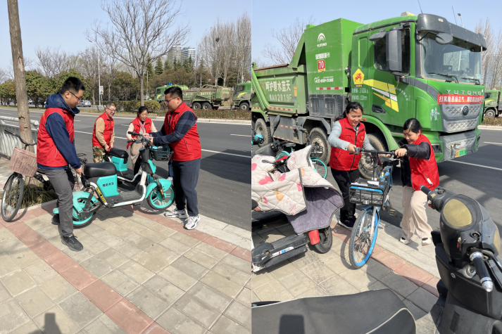 活动现场,全体党员整理了公司东南门及地铁12号线附近道路两侧无序停放的共享单车,按照“规范停放,摆放有序,朝向一致”的原则进行整理摆放,共享单车陆续回归原位。同时,全体党员还呼吁并劝导员工:看到随意乱停放的车辆能随手将它们摆放整齐,自觉维护、爱护身边的共享单车,做文明的骑行者、文明的停放者、文明的宣传者。