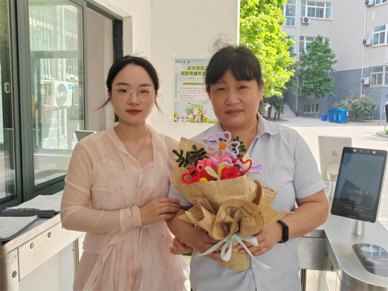 同学们为校园清洁工人送上小红花,感谢他们在酷热中为公司清洁付出的努力;为门岗保安同志献上小红花,感恩他们在骄阳下辛苦值守,保障了校园的安全和畅通;为食堂清洁阿姨和宿舍管理员等众多劳动者一一送上象征着敬意和感谢的花朵。