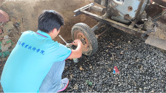 调研团成员紧密融合汽车专业知识与乡村实际情况,深入细致地对村民使用的车辆进行车辆制动、方向、灯光系统以及轮胎花纹深度、刹车磨损程度等情况细致全面的“体检”,并为合格车辆贴上“请全程系好安全带”温馨提示。他们耐心细致,不辞辛劳,用专业知识服务村民,帮助村民从源头上筑牢安全屏障。这次活动让村民的农具用起来更加“得心应手”,更加顺畅高效,实实在在地为乡村振兴注入了科技活力,彰显了新时代青年学子对农业现代化进程的深刻理解以及积极投身乡村振兴的精神。