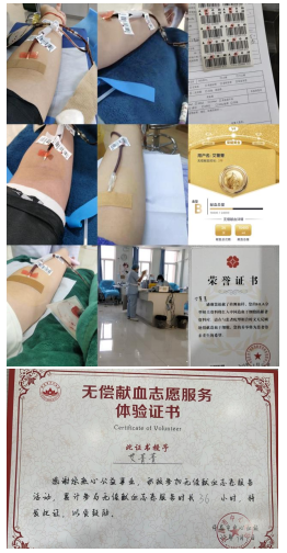 历经十几天的志愿服务,在与献血者和血站医护人员的交流接触里,我收获了众多知识,例如献血时头晕有时候仅仅是因为紧张或者晕血所致,个人献血量的多少与体重存在关联等等。我深知无论是走进献血屋内协助医护人员做一些前期准备工作,还是走出献血屋外沿着街边宣发献血传单,向大众讲解我所学到的献血知识,均是我身为志愿者义不容辞的职责。通过本次实践活动,我的责任意识与公益精神、综合素质以及核心素养都得到了全方位提升。