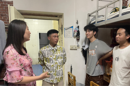 9月1日晚,公司党总支书记房静、副书记夏连峰、团总支书记毛晓羽携辅导员老师一起深入员工宿舍看望返校员工,深入了解员工学习、生活和返校报到情况。