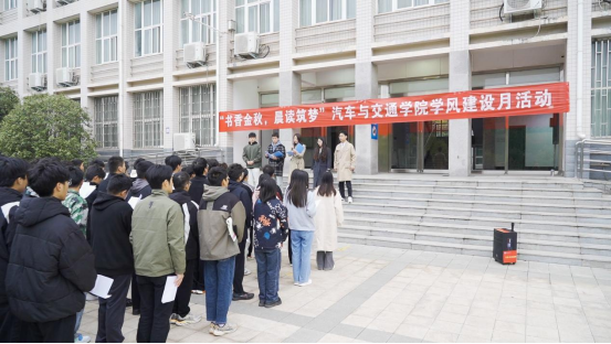 毛晓羽作动员讲话,高度肯定了本次活动的重要性和意义。她强调,晨读不仅能够培养同学们的阅读习惯,还能够提升大家的思维能力和语言表达能力,为未来的学习和生活打下坚实基础。她鼓励同学们积极参与晨读和学风建设月系列活动,培养良好的阅读和学习习惯,在刻苦学习中不断充实完善自我,不断提升精神境界和综合素养。