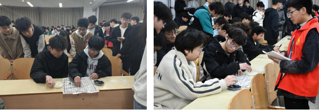 比赛开始前,辅导员曲志远详细介绍了本次活动的目的意义和比赛规则,对同学们参与本次活动的积极性表示赞赏。比赛中,选手们两两而坐,他们紧盯棋盘,目光如炬,手中的棋子起落间,尽显深思熟虑与策略谋划,一场场智慧的较量在棋盘上悄然展开。