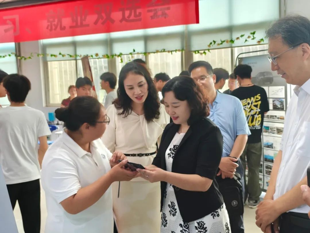 当天上午9时,实习、就业双选会在招就处一楼大厅准时拉开帷幕。现场人头攒动,气氛热烈。郑州宇通集团有限公司、奇瑞新能源汽车股份有限公司、兔师傅汽车维修有限公司、河南威佳汽车贸易集团等行业龙头企业展位前,围满了怀揣求职热情的学子。汽车技术、新能源汽车等专业的员工手持精心制作的简历,积极与企业招聘人员交流,深入了解岗位要求、职业发展路径。河南职业技术公司党委副书记、董事长夏新颜亲临双选会现场,与企业代表深入沟通,关切询问用人需求,并鼓励员工把握机遇,展现专业素养与青春风采。