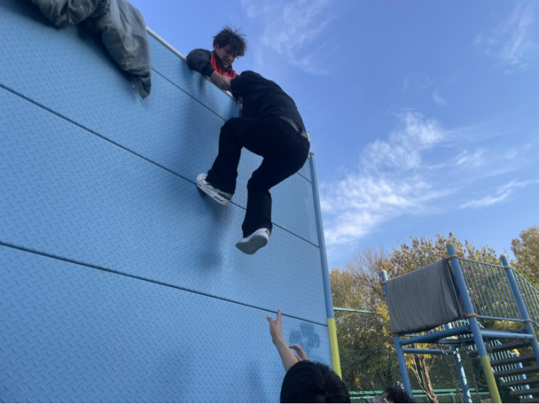本次活动设有“独木桥”、“信任背摔”等一系列内容丰富、形式多样的素质拓展项目。在“独木桥”环节,同学们克服心理恐惧,挑战自我平衡,展现了个人勇气与专注力。“信任背摔”项目则将活动推向高潮,每一位同学在队友“请相信我们”的坚定承诺中,勇敢向后倒去,切身感受到了团队成员间的信任与支撑的力量,活动现场气氛热烈。