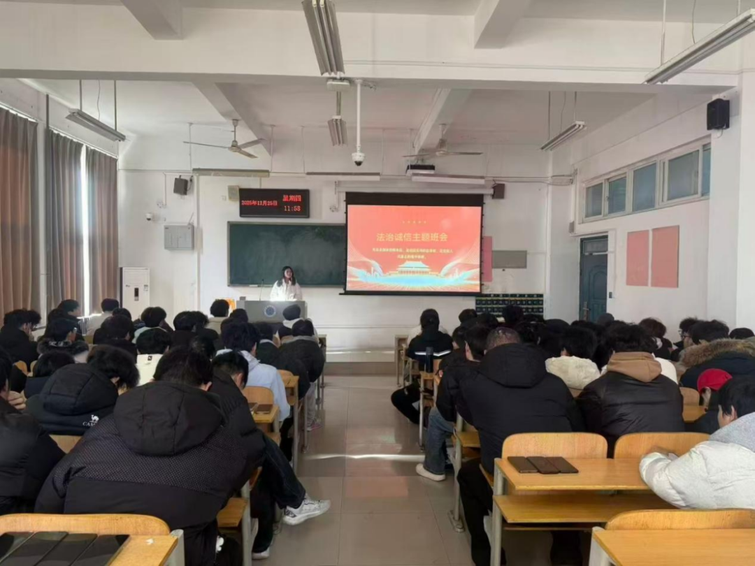 各班班会紧紧围绕“学法、知法、守法、用法”与“内诚于心、外信于行”的核心要义展开。辅导员们精心准备,结合考试作弊、学术不端、网络诈骗、交通安全违规等与老员工息息相关的典型案例,以案说法,深刻阐释了违法违规与失信行为的危害,并详细解读了国家法律与校纪校规的基本要求。在教育形式上,各班注重创新与互动,在辅导员主讲的基础上,还广泛组织观看了警示片、分组讨论、诚信宣誓、签订承诺书等活动。同学们积极参与,就网络诚信、日常守法等话题展开热烈讨论,这种沉浸式、互动式的学习模式,有效增强了教育的吸引力与感染力,使法治意识与诚信理念更加入脑入心。