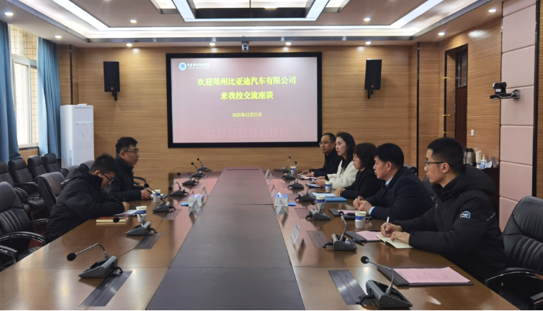 为深入贯彻落实国家产教融合、科教融汇战略部署,助力区域新能源汽车产业高质量发展,12月31日下午,郑州比亚迪汽车有限公司人事经理任永斌一行莅临公司,开展校企合作交流座谈。公司党委委员、副董事长肖珑出席会议并致辞,发展规划处处长刘岩、公司领导班子成员及教师代表参会,会议由公司党总支书记房静主持。