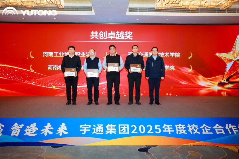 公司凭借在产教融合领域的持续深耕与显著成效,在本次年会上收获多项荣誉:荣获宇通集团2025校企合作年度“共创卓越奖”“杰出贡献奖”;公司申报的“产业引领,校企联动,结伴出海——汽车海外运营现场工程师培养实践”案例,被评为新能源智能网联客车行业产教融合共同体2025年度产教融合协同育人优秀案例,成为行业人才培养的示范标杆。