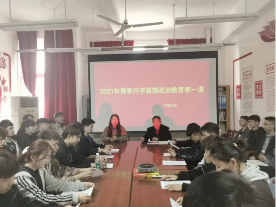 为了提高员工的思想政治意识,增强员工们对十四五发展规划和当前经济形势的认识。汽车工程公司党总支书记朱梦杰和辅导员毛晓羽老师于2021年3月16日下午带领汽车检测与维修204班全体员工,在yl7703永利实训楼507教室开展了2021年春季学期思想政治教育第一课。