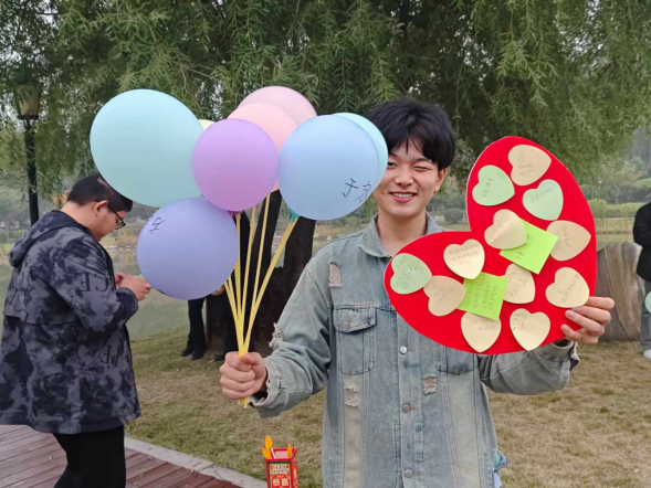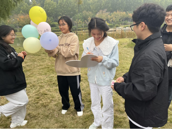 在活动的“共话青春”环节,同学们手持写有自己名字的气球进行自我介绍,分享感情故事和校园生活,倾诉烦心事以释放压力。随后,同学们或独唱,或自由组合,尽情高歌自己喜爱的歌曲,“唱”开心扉,锻炼自身的胆量。随后,借助组队投壶、互记名字、装饰心愿牌等小游戏营造轻松愉快的社交环境,促进大家相互熟悉,结交新朋友。