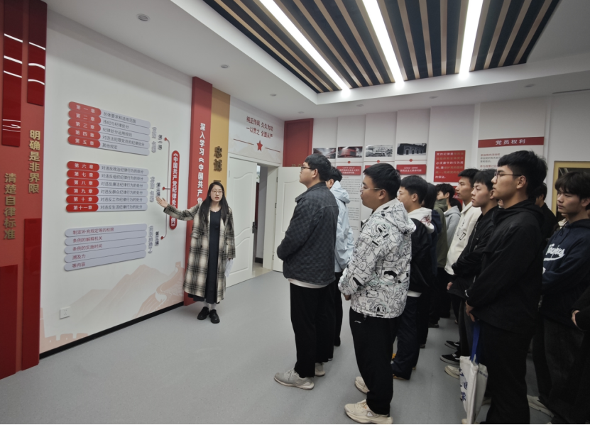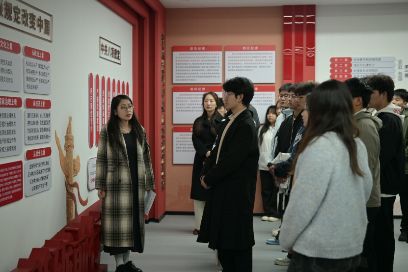 走进教育馆,浓厚的红色氛围扑面而来。葛瑞杰以“淬炼党性、砥砺前行”为主题,带领同学们依次参观了党的纪律建设的演变历程、深入贯彻中央八项规定精神、领导干部“十不准”规定等展区。她结合鲜活案例,从党的纪律建设历史讲到新时代青年的使命担当,引导学员们深刻理解“全心全意为人民服务”的根本宗旨。毛晓羽在互动环节中鼓励大家分享学习感悟,现场气氛热烈,掌声不断。